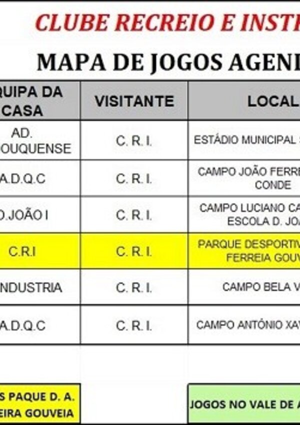 Calendário de Jogos do CRI