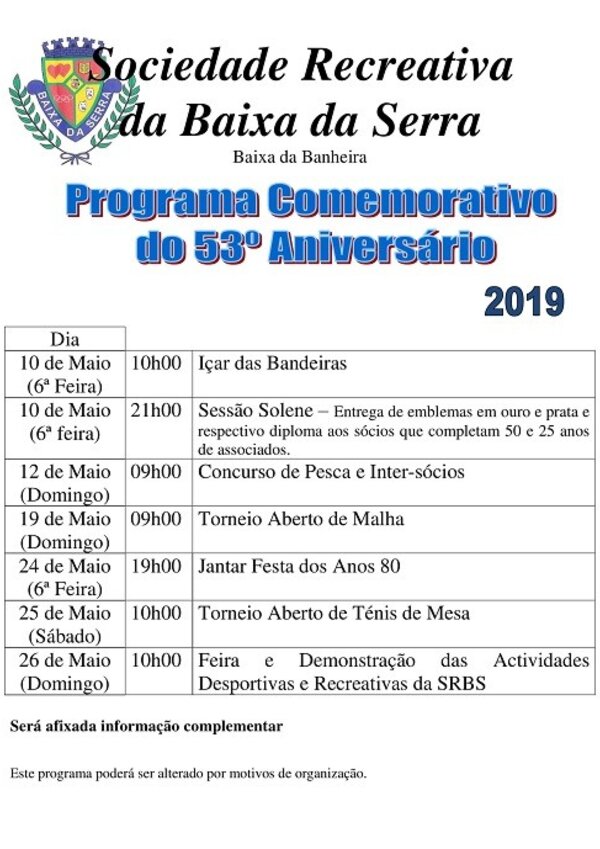 53º Aniversário da Sociedade Recreativa da Baixa da Serra