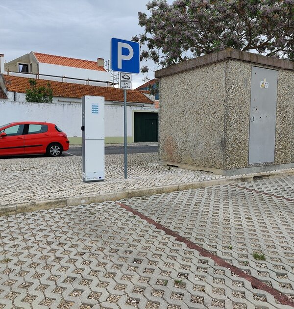 Posto de carregamento de veículos elétricos em funcionamento