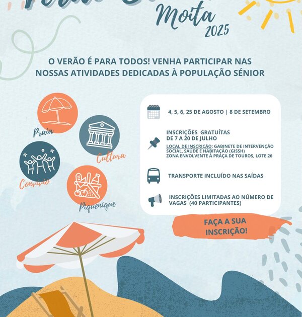 Prepare-se para o Verão Sénior Moita 2025 - Inscrições abertas até ao dia 20 de julho