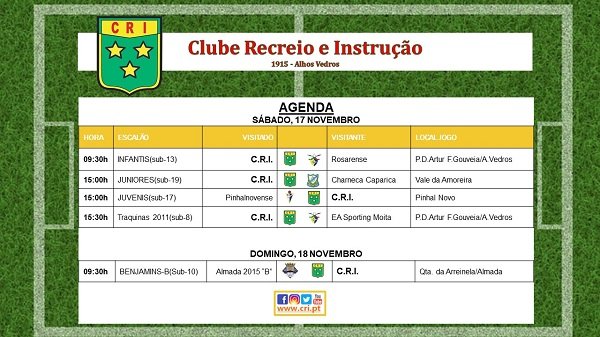 15:00h JUVENIS(sub-17) Pinhalnovense x CRI (Pinhal Novo)