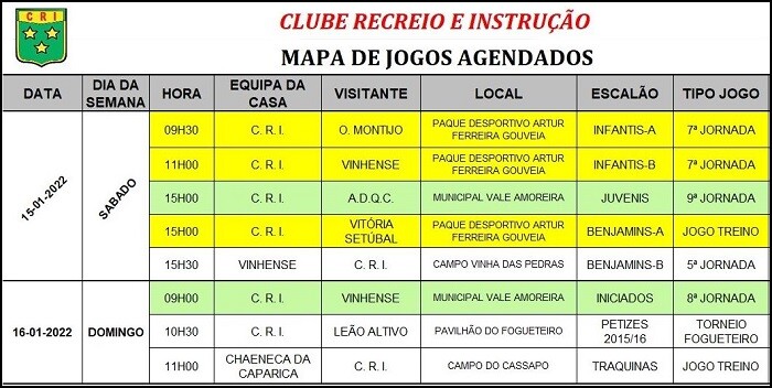 Calendário de Jogos do CRI