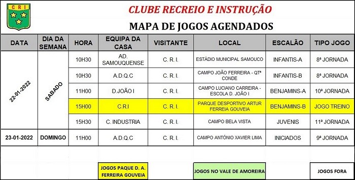 Calendário de Jogos do CRI