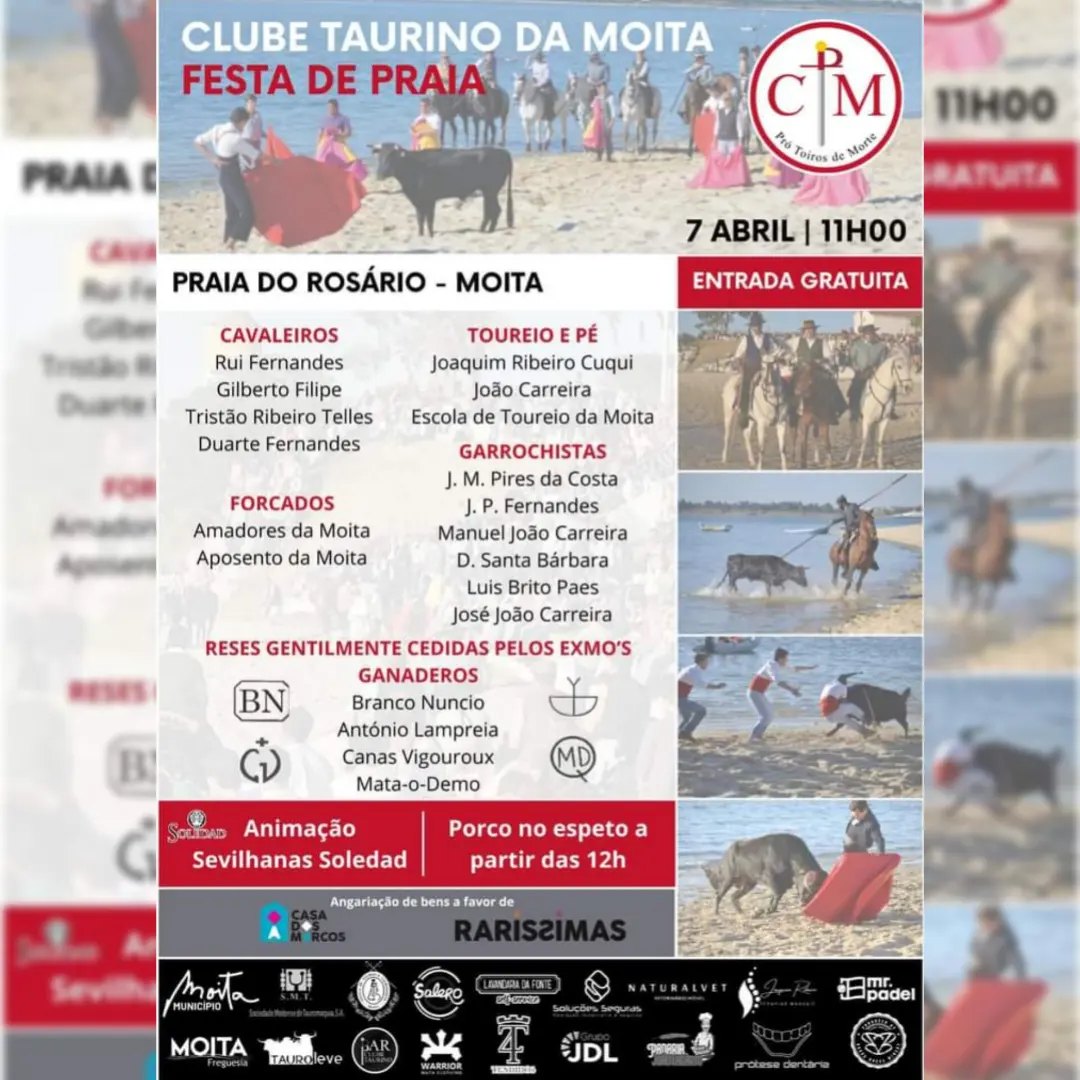 O Clube Taurino da Moita, com o apoio de vários parceiros, irá realizar um evento solidário para a Associação Raríssimas, dia 7 de abril, na Praia do Rosário, entre as 11h00 e as 19h00.