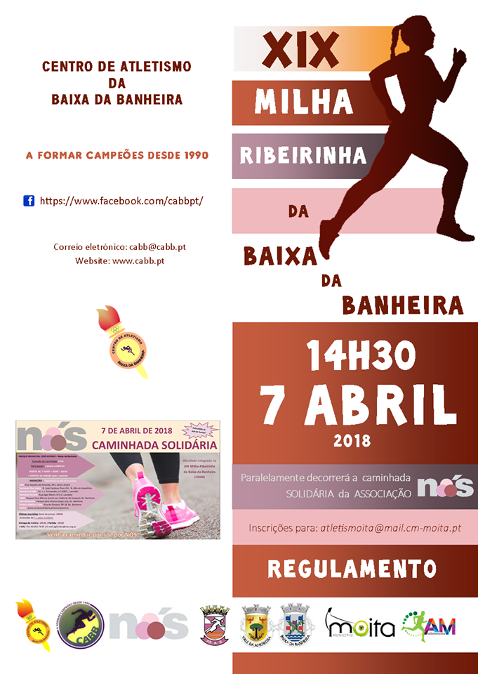 Inscrições gratuitas até dia 6 de abril às 16h00 através do endereço: atletismoita@mail.cm-moita.pt