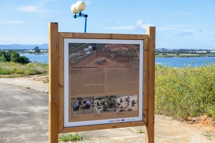 Painéis do circuito de intrepretação, que dão a conhecer as salinas e a fauna e flora do local e do estuário do Tejo.
