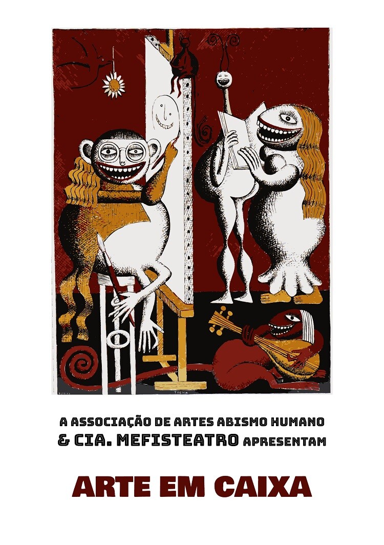 Arte em Caixa é um pequeno mundo de horrores e maravilhas para os mais audazes, implementado na rua como um fungo vindo de um planeta distante e que ludibria os viajantes a diferentes divisões, com teatro de miniaturas, produtos artísticos, exposições, rifas e curtas metragens.