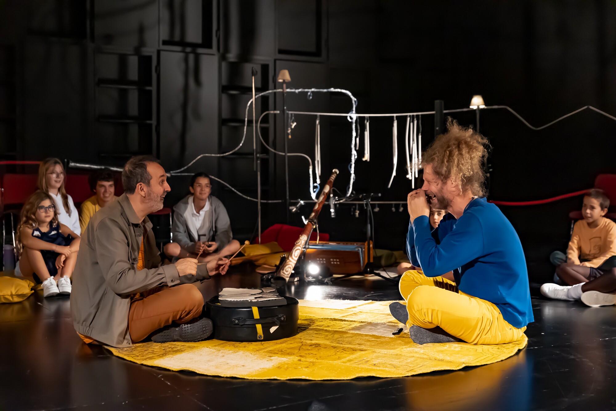 Dois músicos-performers estão no meio do público, abolindo o dentro-fora, o palco- plateia. Toda a gente a partilhar a mesma toca, protegendo-se e cuidando uns dos outros. Lá fora pode chover ou fazer frio, mas aqui estamos quentinhos e a fazer por estar bem. Temos direito, não é? TOCAS é um espetáculo sem palavras que fala da nossa necessidade de uma casa e de afeto. Partimos do som e estamos também a falar daquilo que queremos para as nossas vidas: muitos toques dentro da toca.