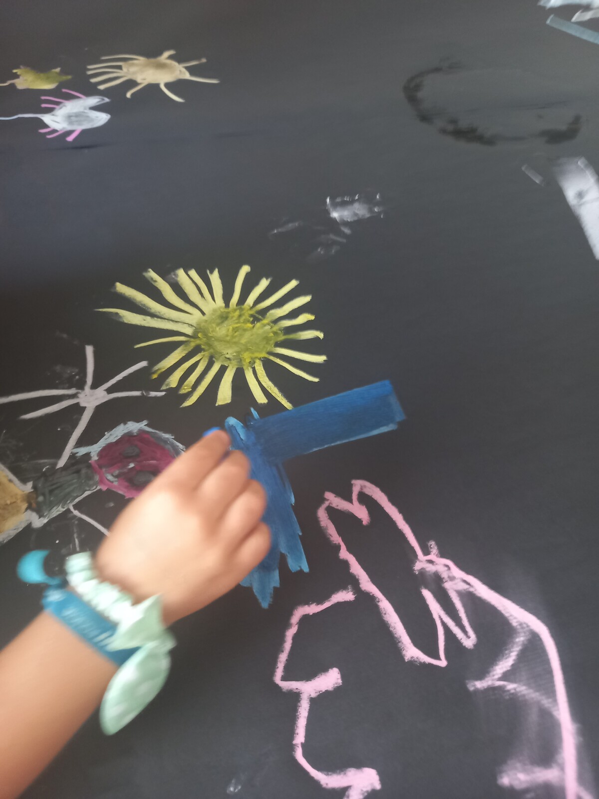 Neste caminho exploratório há muito por desvendar. E em meio às possibilidades de cores em suportes escuros, experimentamos o giz de formas inusitadas, surpreendentes e muito especiais.