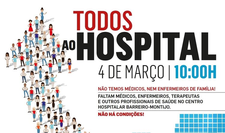 Está agendada para o dia 4 de março, a partir das 10:00h, uma ação de protesto junto ao Hospital do Barreiro que terá início com uma Marcha entre a Baixa da Banheira e o Hospital do Barreiro e que culminará com uma concentração junto ao hospital.
