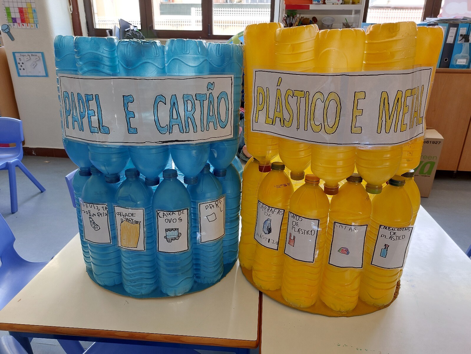 Também os alunos do 6ºano da EB 2,3 José Afonso construíram ecopontos em materiais reutilizáveis, um trabalho realizado na disciplina de Educação Tecnológica, no âmbito do Programa Eco-Escolas.