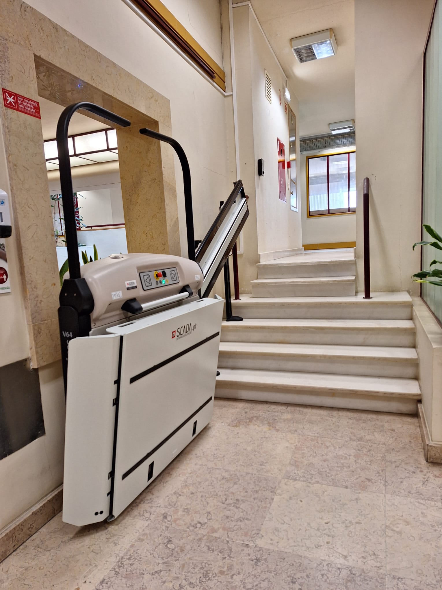Foi instalada uma plataforma elevatória para cadeiras de rodas no segundo piso do edifício que irá permitir o acesso quer ao segundo, quer ao primeiro piso onde se encontra o Salão Nobre e o Gabinete da Presidência.