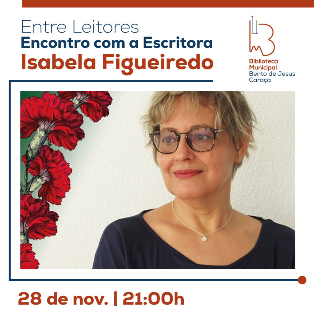 Devido à previsão de mau tempo para a nossa região nos próximos dias, o evento agendo para hoje, Entre Leitores: Encontro com Isabela Figueiredo, na Biblioteca Municipal Bento de Jesus Caraça, pelas 21:00 horas, irá realizar-se no dia 28 de novembro no mesmo horário.