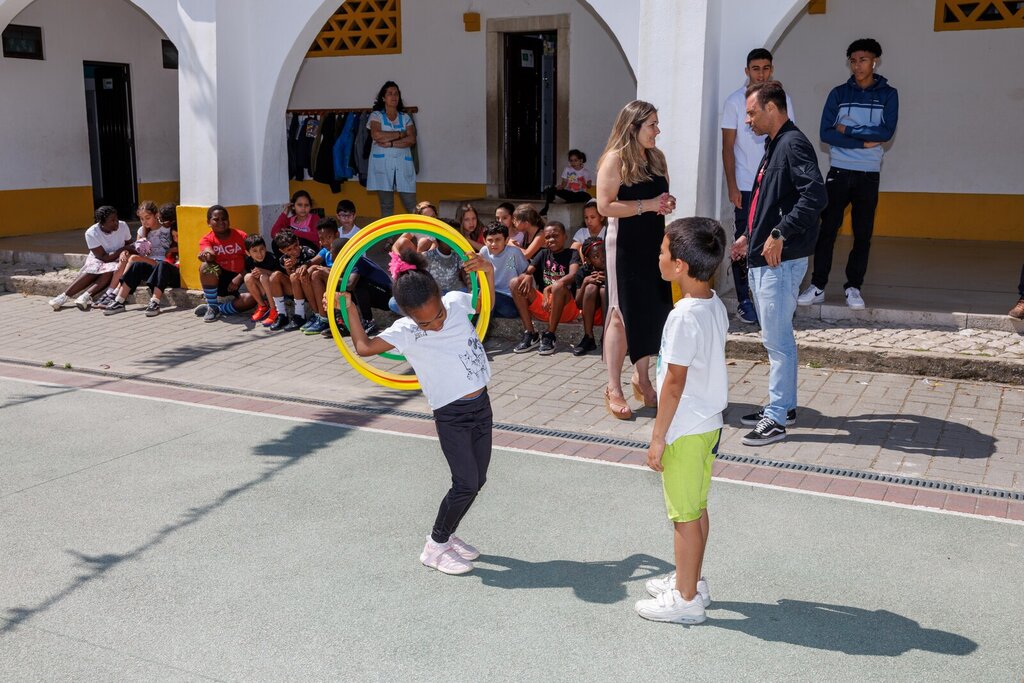 Arcos, cordas e bolas de ginástica rítmica, colchões, raquetes e bolas de espuma, cones de sinalização e bolas de futebol foram os materiais entregues nas escolas EB nº1 Alhos Vedros, EB nº2 Alhos Vedros, EB Nº 6 da Baixa da Banheira, EB Nº 4 da Baixa da Banheira, EB Nº 5 da Baixa da Banheira, EB Nº3 da Baixa da Banheira e EB Alhos Vedros (ex Nº3).