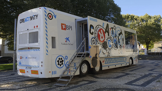 O “Creactivity” ganha vida dentro de um autocarro que se converte numa unidade móvel totalmente adaptada, para facilitar o acesso e a participação das pessoas com mobilidade reduzida. O veículo está equipado por dentro com bancos, mesas de trabalho e diversas provas preparadas para os alunos realizarem.
