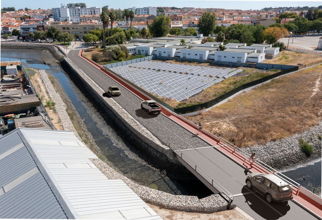 Com um investimento estimado em cerca de 500 mil euros, a obra, que terá início em outubro, consistirá no alargamento da estrada ao longo da Caldeira da Moita e da ponte, com a construção de um novo tabuleiro. A nova estrutura permitirá a criação de uma faixa de circulação automóvel de seis metros de largura, com duas vias e dois sentidos de trânsito, além de uma sinalização rodoviária compatível com a Zona 30. A obra também incluirá, de um lado, uma via ciclável e pedonal conectada à existente na marginal da Moita, conforme demonstrado nas plantas anexas à adenda.