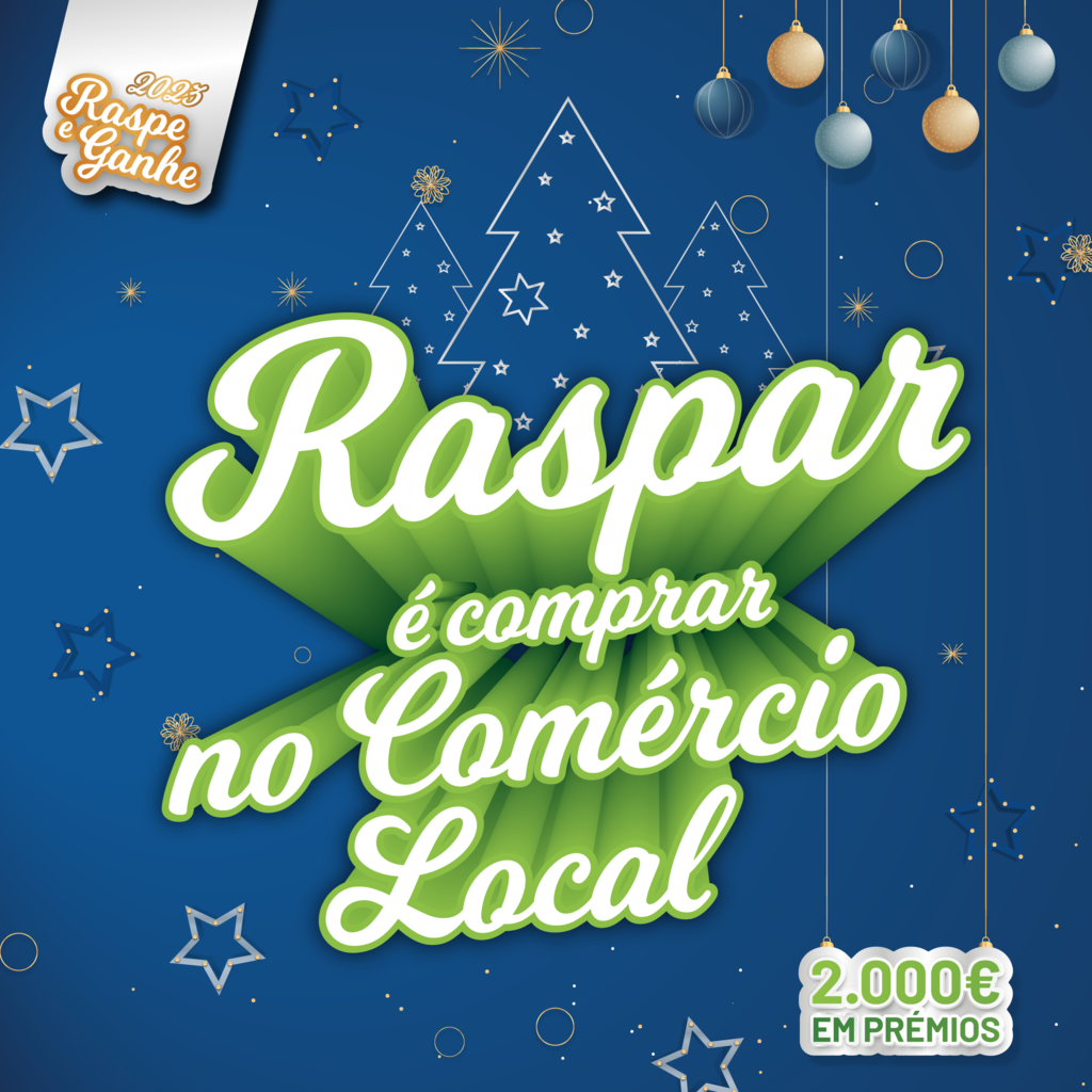 Esta iniciativa, “Raspar é Comprar no Comércio Local”, que decorre de 1 de dezembro de 2023 a 31 de janeiro de 2024 é uma forma de apoiar os comerciantes do concelho do comércio a retalho, tradicional e de proximidade e de prestação de serviços.