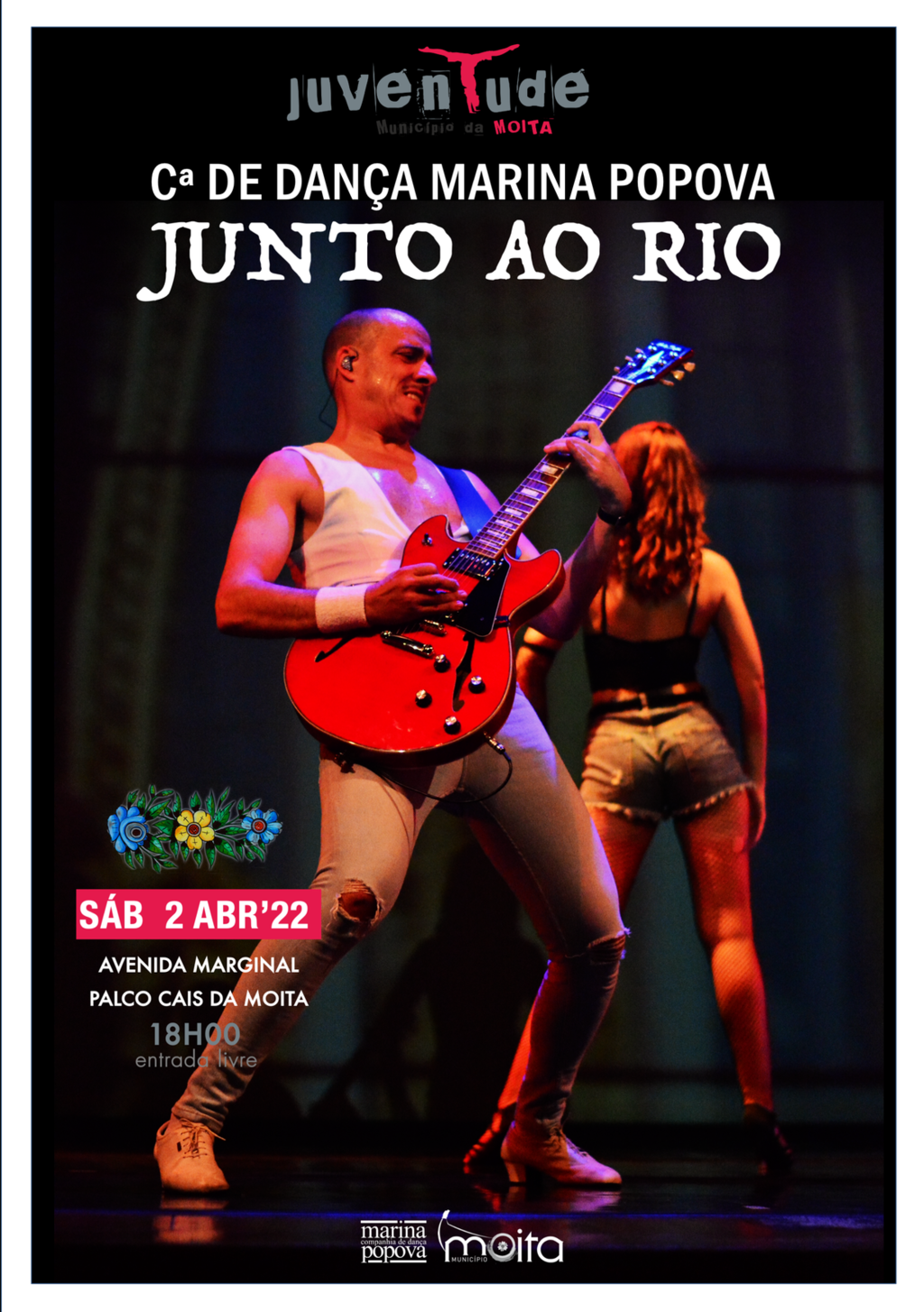 Duas horas mais tarde, pelas 18:00h, a Companhia de Dança Marina Popova apresenta-se na Avenida Marginal, junto ao Cais da Moita, com um espetáculo multidisciplinar, com uma série de curtas de dança e música ao vivo, onde a natureza e a cultura local são o cenário de fundo deste “Teatro no Mar”.