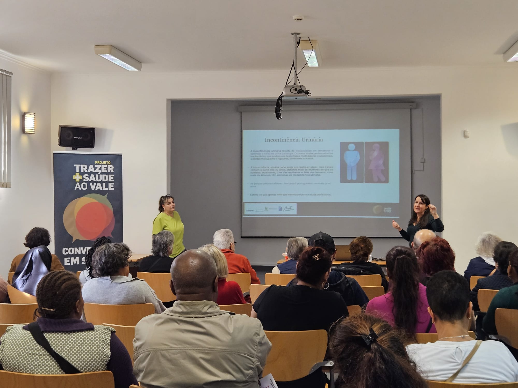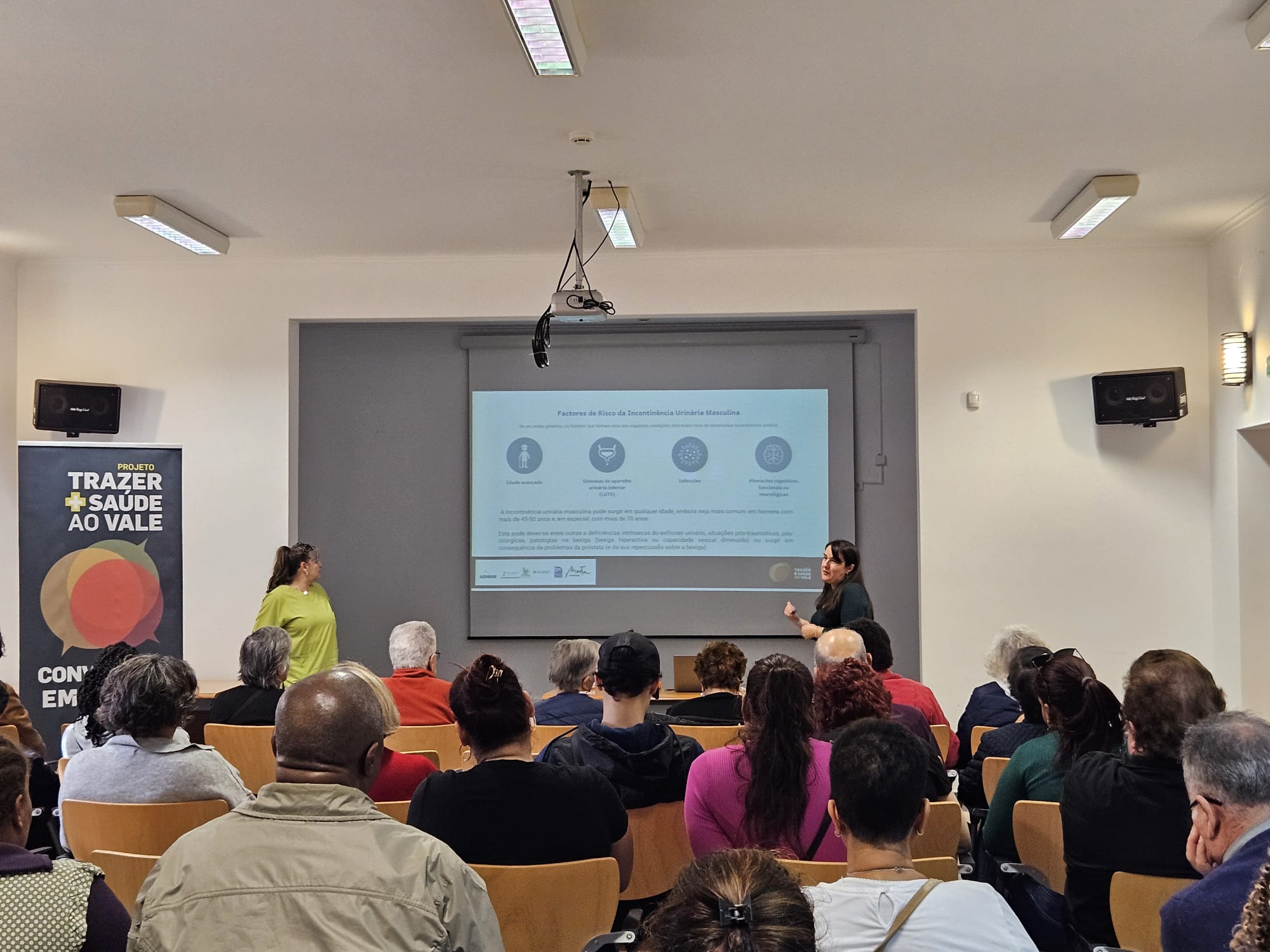 Nesta sessão, dinamizada pela Dr.ª Dulce Fonseca, Diretora Técnica da Farmácia Jordão Pedrosa e pela Enf.ª Clara Saramago, da UCC “Saúde na Rua”,abordou-se a hiperplasia benigna da próstata e incontinência urinária, foram também abordadas questões relacionadas com as vias urinárias e a próstata, foi promovida a sensibilização para os sinais de alerta relativos à incontinência urinária e possíveis sinais de alerta, promovendo a educação sobre estilos de vida saudáveis e quais as medidas preventivas.