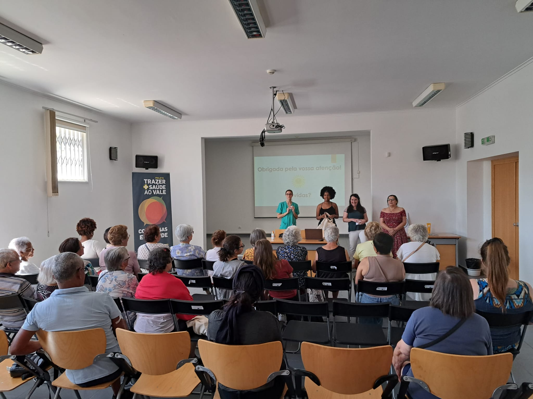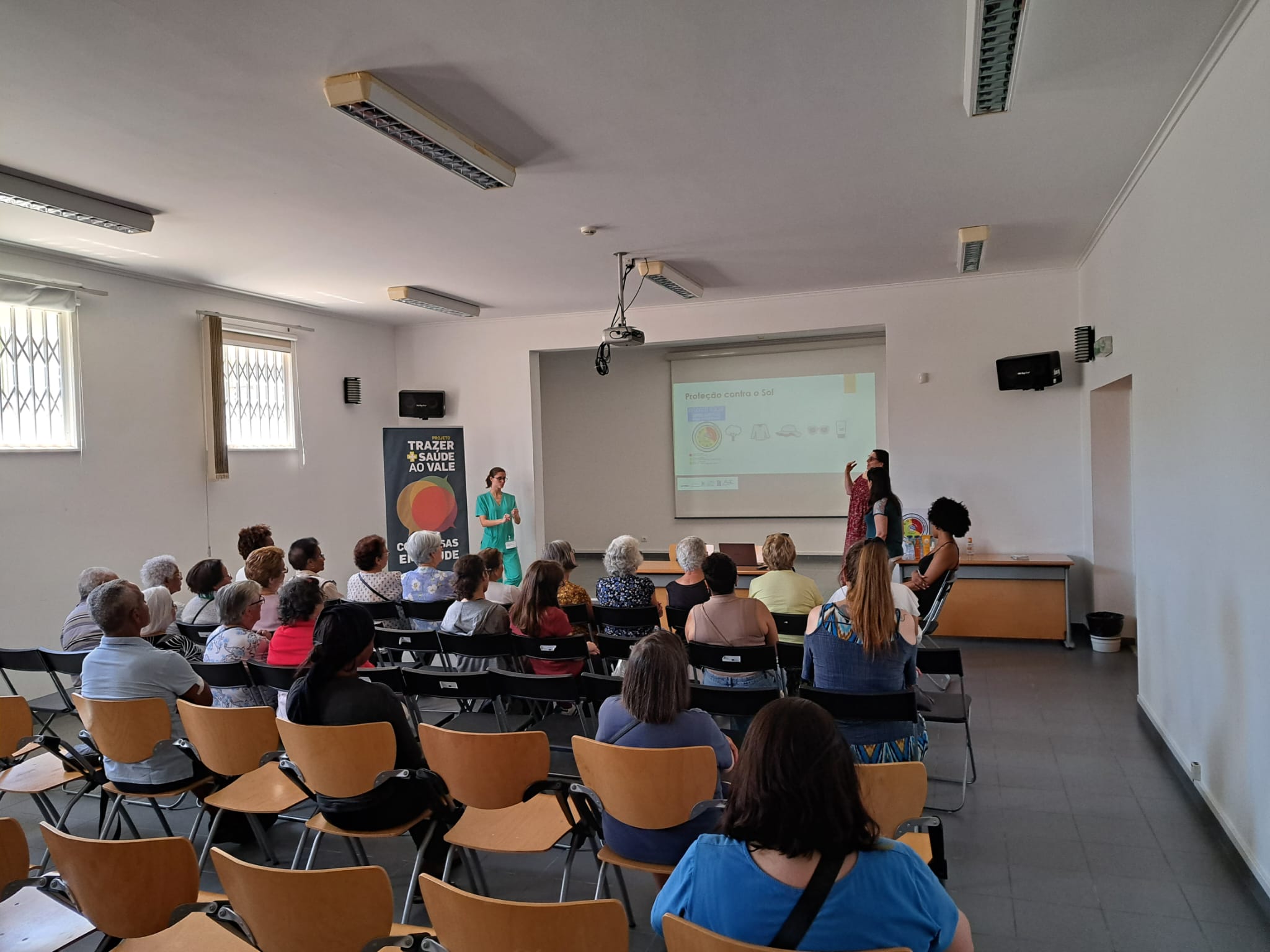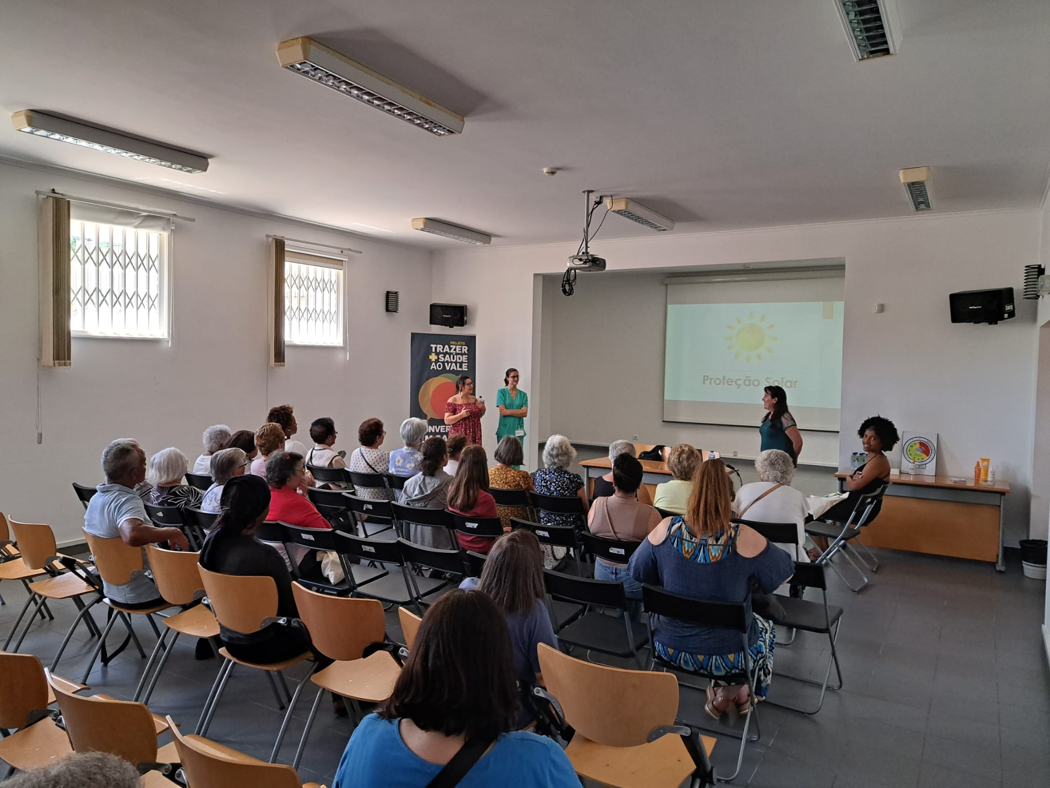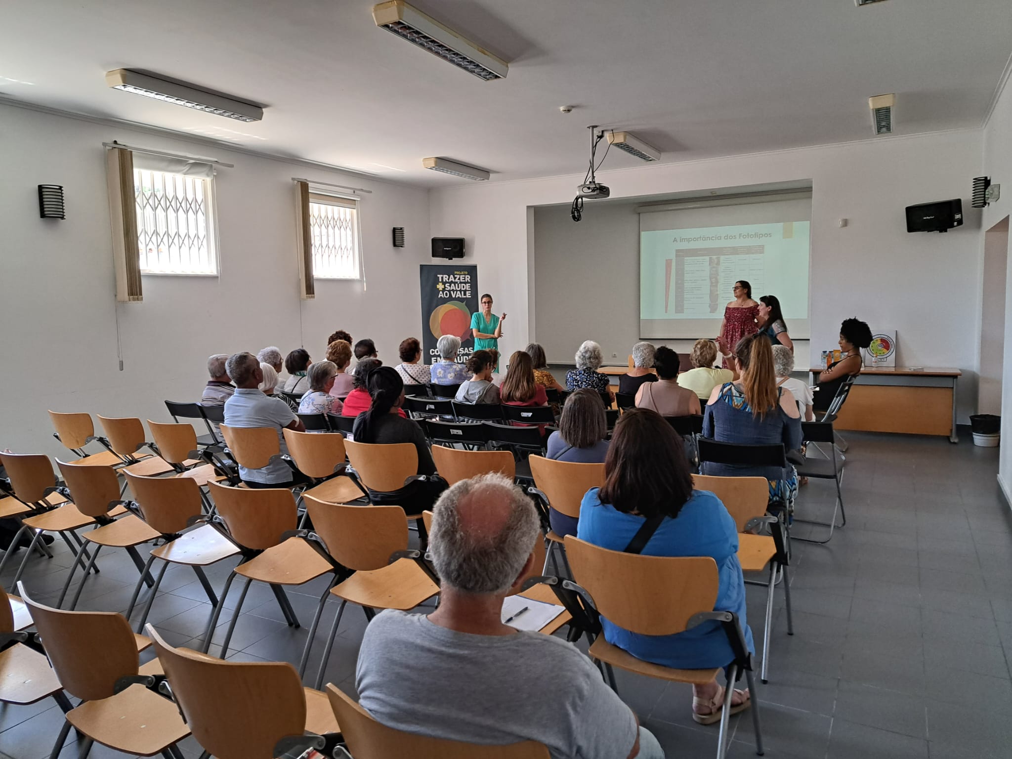 A sessão foi dinamizada pela Dr.ª Angélica Ferreira da USF Querer Mais, com a colaboração da Enf.ª Clara Saramago da UCC Saúde na Rua e da Dr.ª Dulce Fonseca, Diretora Técnica da Farmácia Jordão Pedrosa.