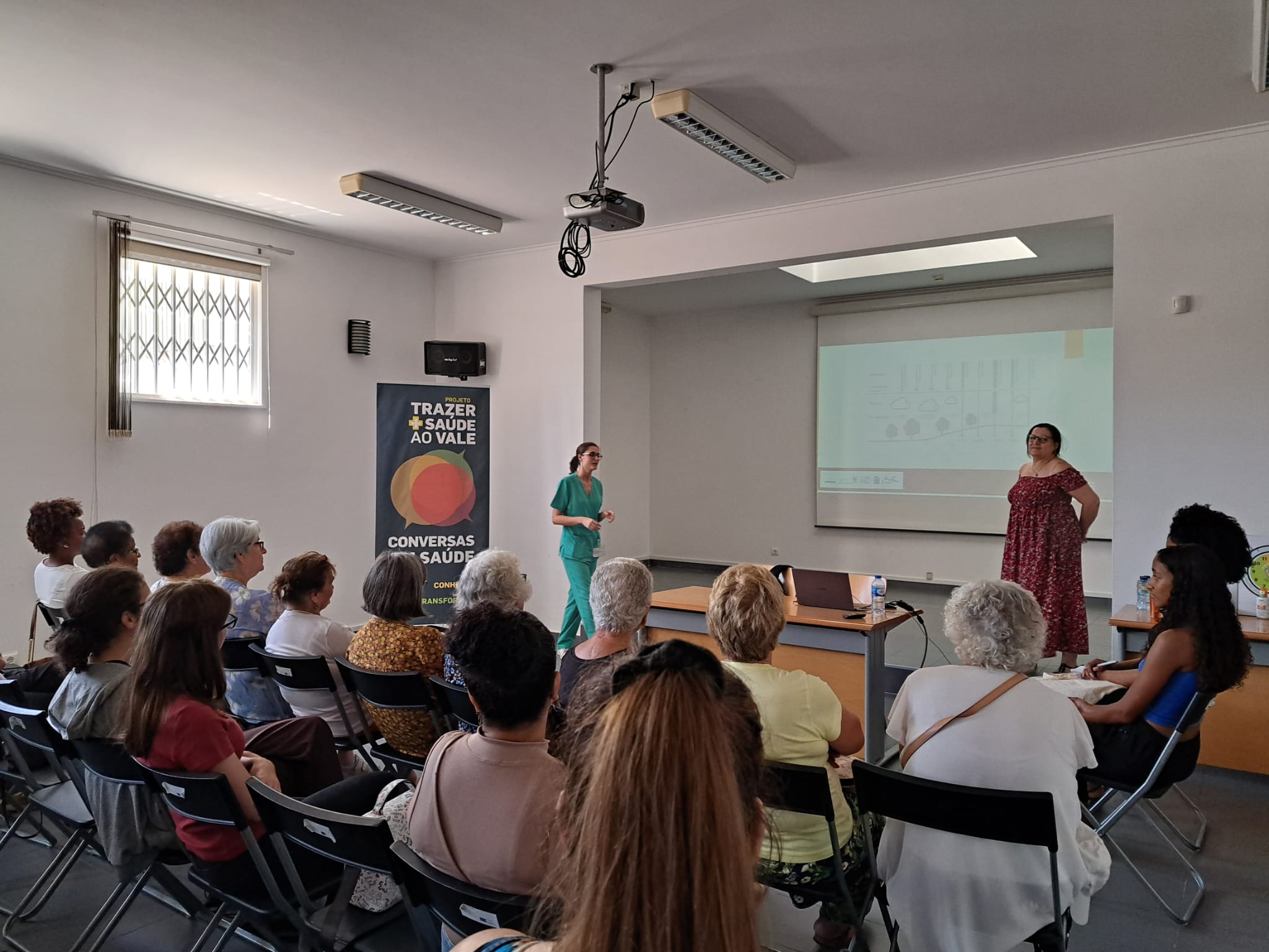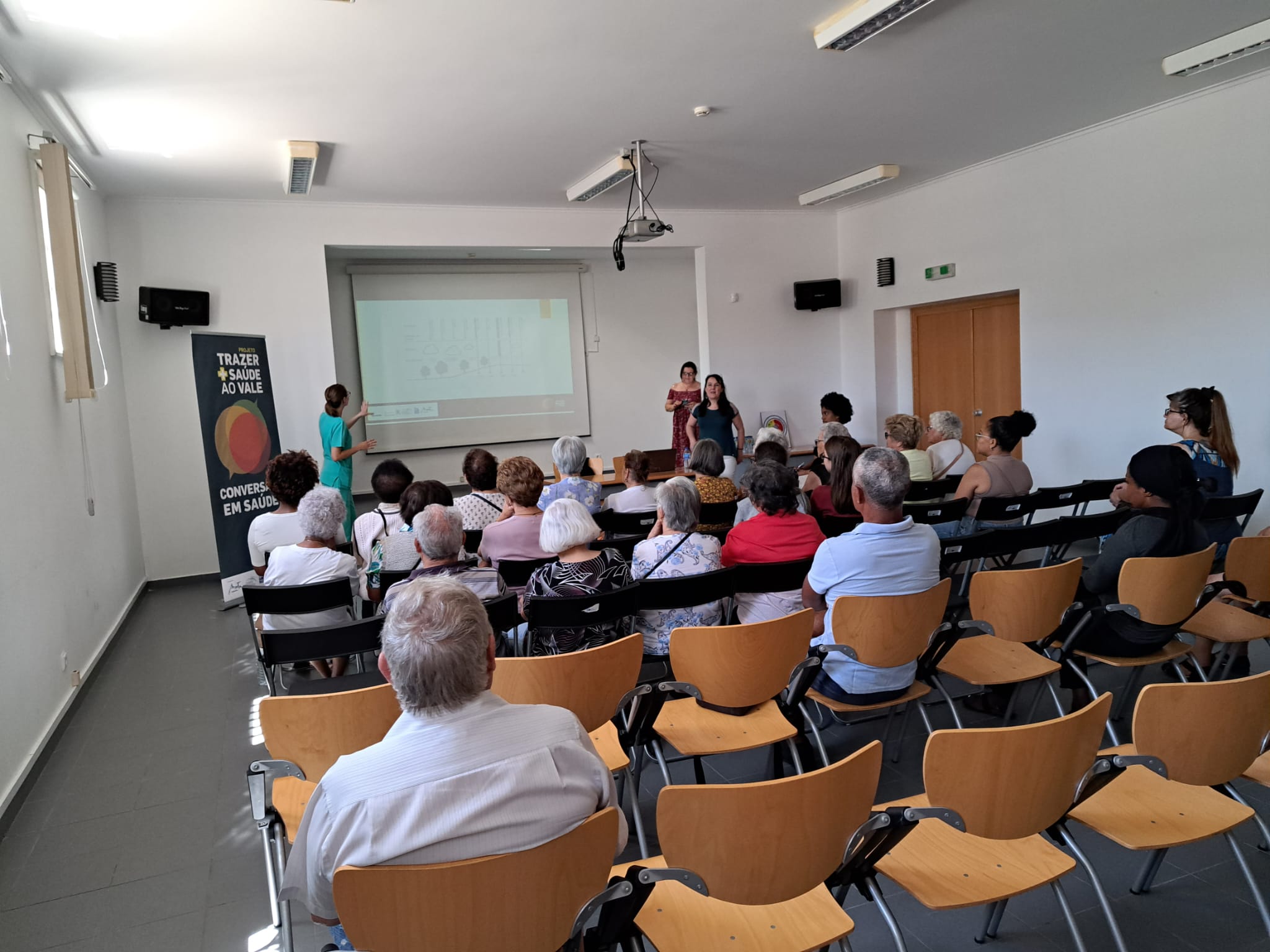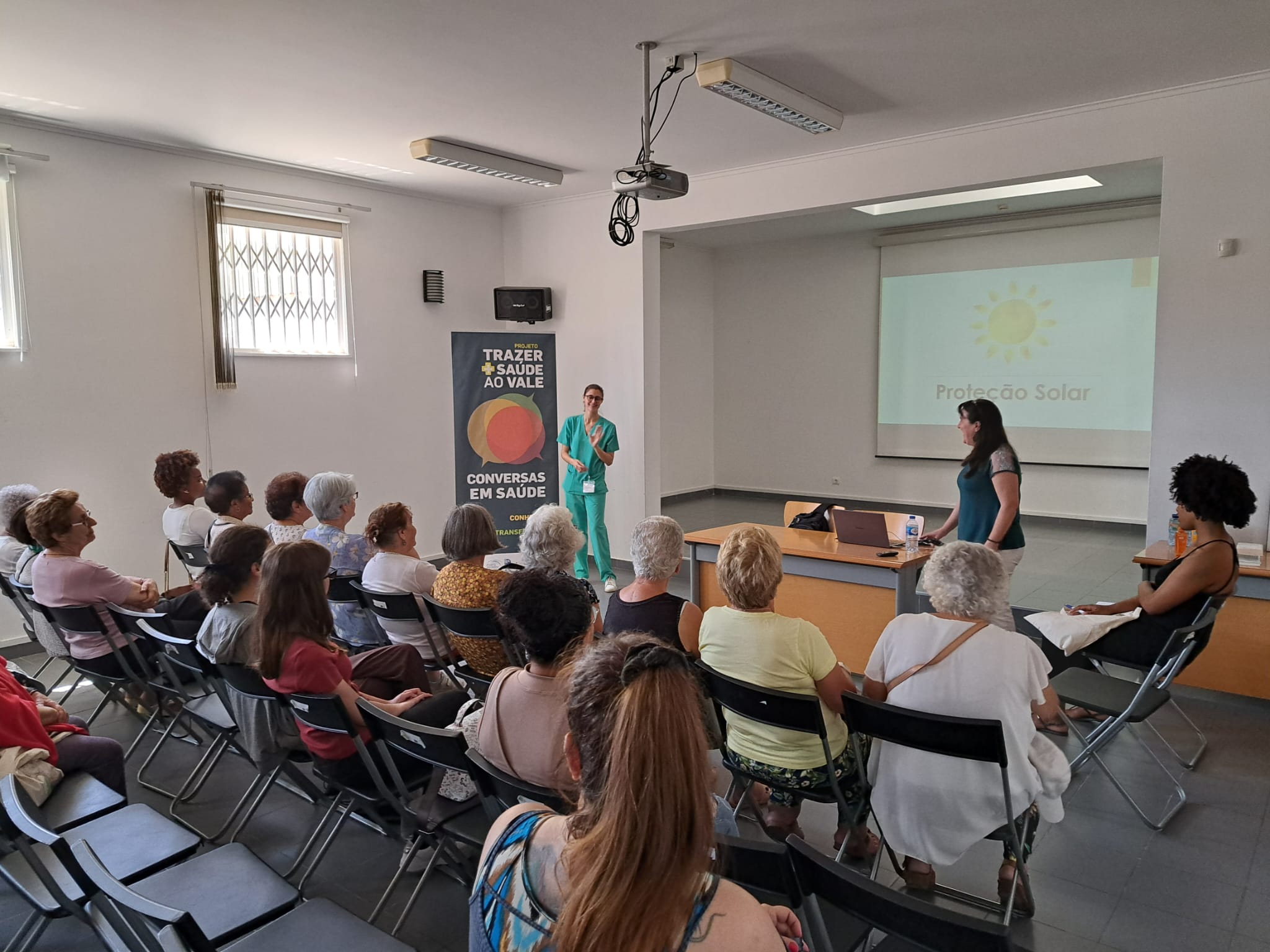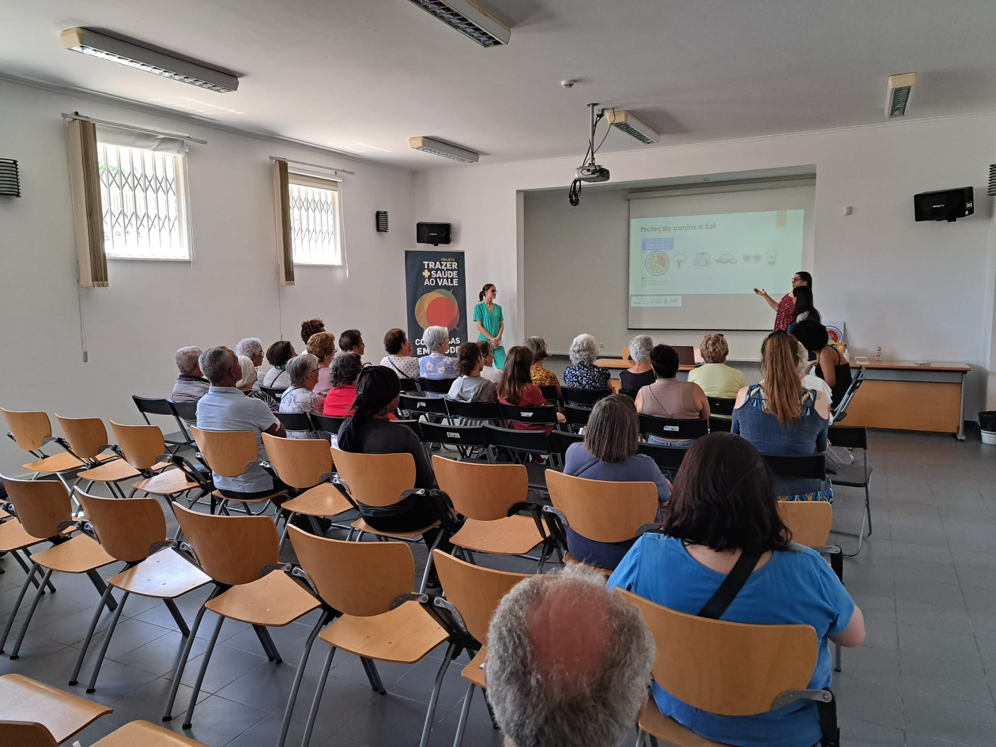 A sessão foi dinamizada pela Dr.ª Angélica Ferreira da USF Querer Mais, com a colaboração da Enf.ª Clara Saramago da UCC Saúde na Rua e da Dr.ª Dulce Fonseca, Diretora Técnica da Farmácia Jordão Pedrosa.