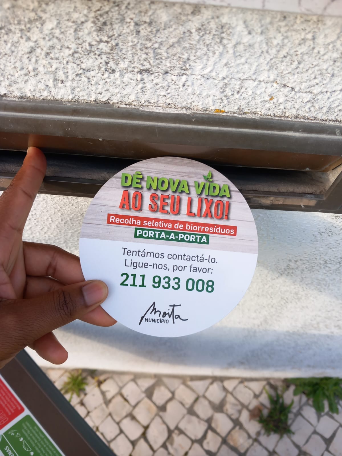 A recolha seletiva porta-a-porta de Biorresíduos está a ser alargada a novas zonas. Se reside numa destas três zonas, e se ainda não foi contactado pela equipa contratada pela Câmara Municipal para esclarecer dúvidas e facilitar a adesão dos munícipes ao projeto, pode ligar para o número indicado. A Câmara Municipal entrega a cada morador da área de recolha um contentor de 40l ou 80l para depositar os seus Biorresíduos: restos de comida, cascas de fruta e legumes, restos de carne e peixe, cascas de ovos, borras de café, saquetas de chá, etc. e aparas de ramos, ervas e outros resíduos de jardinagem. A recolha porta-à-porta será efetuada, duas vezes por semana, nos dias indicados para a sua zona.