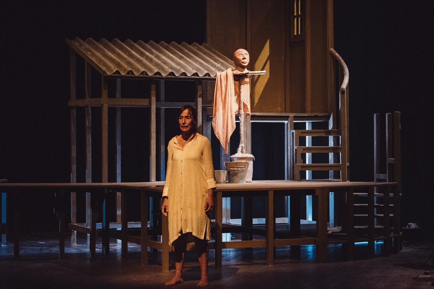 Texto: João Monge | Encenação: Maria João Luís | Com Maria João Luís e os músicos Miguel Leiria Pereira, Sofia Pires e Sofia Queiroz Ôre-ibir | Música para três contrabaixos: José Peixoto | Cenografia: José Carretas | Desenho de luz: Pedro Domingos | Produção executiva: Rita Costa | Assistência de encenação e design gráfico: Clarisse Ricardo | Pintura do cartaz: Soledad Lagruta | Fotografia de cena: Vitorino Coragem | Assistência de produção: Filipe Gomes | Direção de produção: Pedro Domingos | Produção: Teatro da Terra 2019.