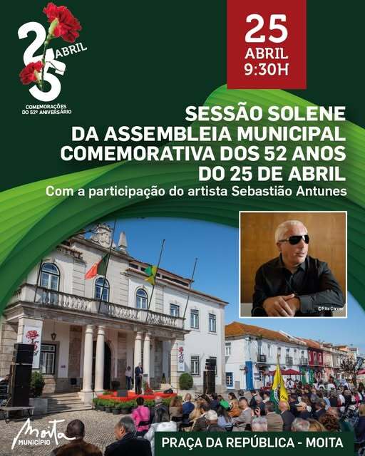 - 9:30 horas: Sessão Solene da Assembleia Municipal da Moita, comemorativa do 52º aniversário do 25 de abril.