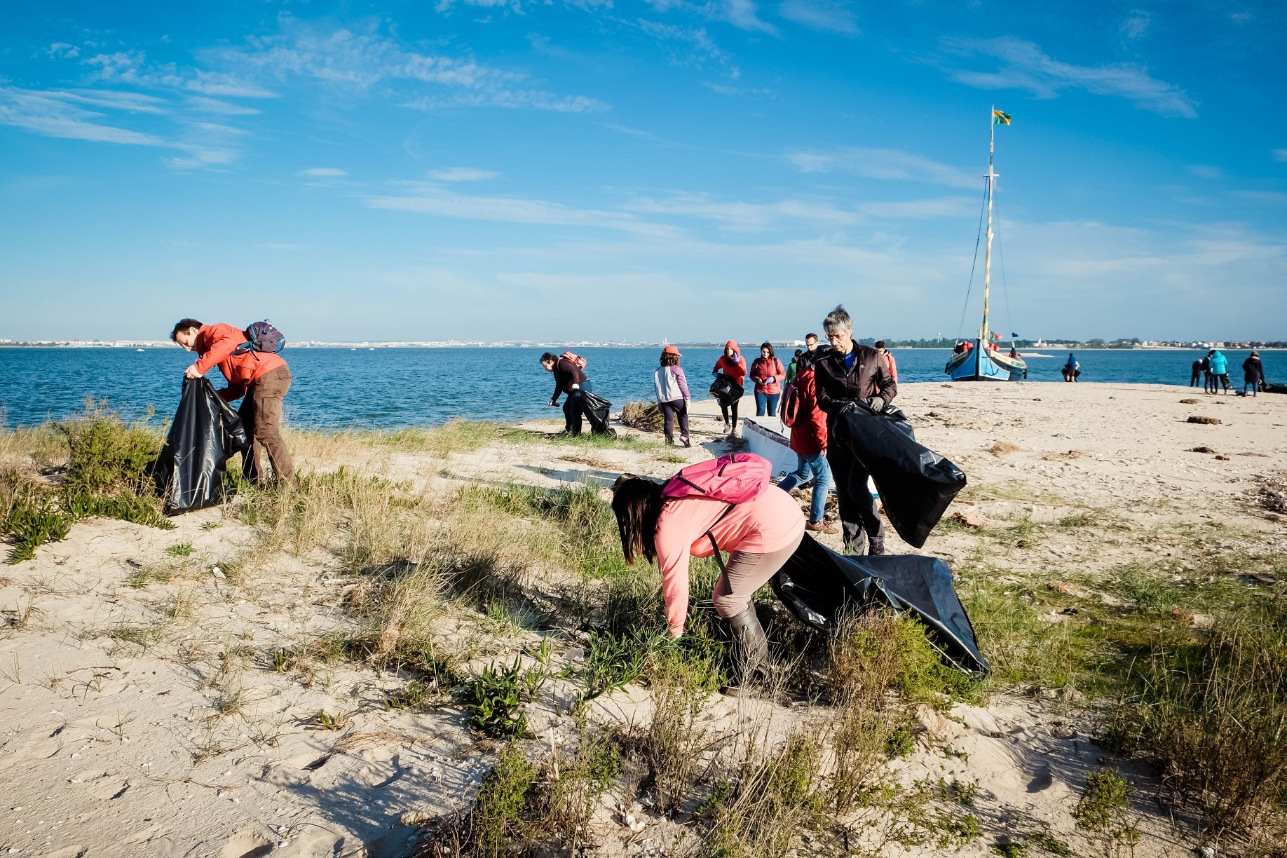 O varino “O Boa Viagem”, cedido pela Câmara da Moita, a canoa “Salvaram-me” e o catraio “Esperança” asseguraram o transporte dos participantes até à Ilha do Rato, onde foi desenvolvida a ação de limpeza de plásticos e vidros.