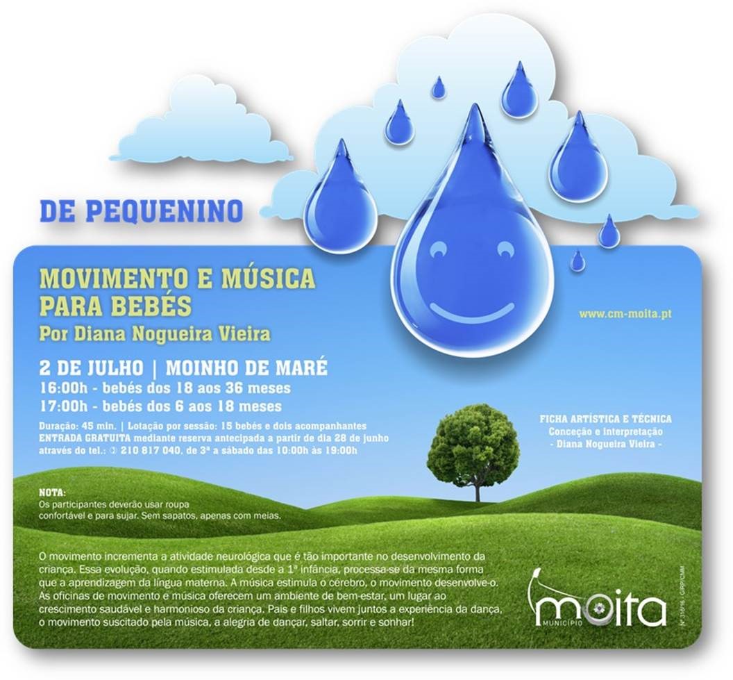 Estão agendadas para o dia 2 de julho, no Moinho de Maré, em Alhos Vedros, duas sessões do Projeto “De Pequenino”, uma às 16:00h, para bebés dos 18 aos 36 meses, e outra às 17:00h, para bebés entre os 6 e os 18 meses, desta vez com oficinas de movimento e música, por Diana Nogueira Vieira.