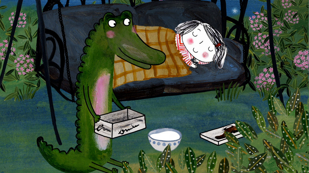 Rita e o crocodilo vão passear pela floresta e quem salva a situação é o crocodilo.