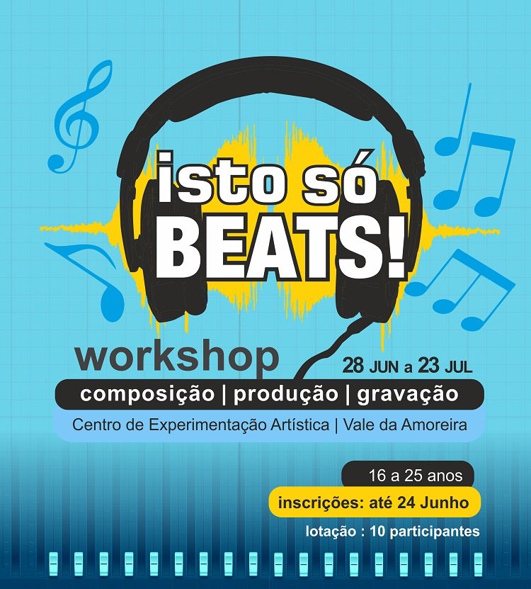 “Isto só Beats” é o nome do workshop, para jovens dos 16 aos 25 anos, que vai decorrer no Centro de Experimentação Artística, no Vale da Amoreira, entre os dias 28 de junho e 23 de julho, dinamizado por Edsong, com a participação especial do escritor Bruno Vieira Amaral (composição de letras e escrita criativa) e Azaiaz (gravação de imagem e videoclip). As inscrições são gratuitas e limitadas a 10 participantes.