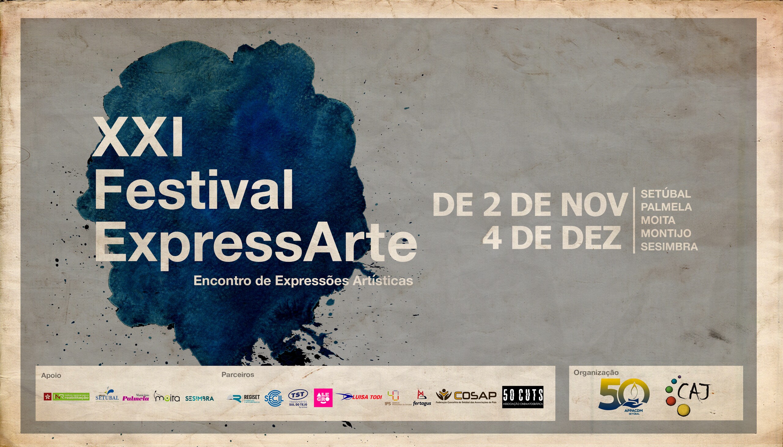 Está a decorrer, até 4 de dezembro, o Festival ExpressArte - XXI Encontro de Expressões Artísticas, organizado pelo Clube de Animação Jovem da APPACDM - Associação Portuguesa de País e Amigos do Cidadão Deficiente Mental de Setúbal, em parceria e com o apoio de vários municípios. O festival iria passar pelo concelho da Moita, nos dias 23, 24 e 25 de novembro, mas, no contexto atual provocado pela pandemia de COVID-19, o evento será assinalado nas mesmas datas, de formas alternativas, com a possibilidade de participação da comunidade escolar no desafio lançado pelo Clube de Animação Jovem da APPACDM que a Câmara Municipal da Moita fez chegar às escolas.