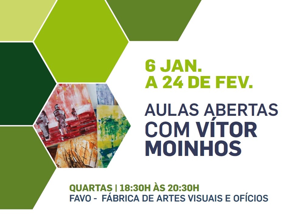 O Espaço Favo - Fábrica de Artes Visuais e Ofícios, em Alhos Vedros, volta a receber, entre 6 de janeiro e 24 de fevereiro, as Aulas Abertas de Pintura com Vítor Moinhos. As aulas vão decorrer todas as quartas-feiras, das 18:30h às 20:30h, sendo necessário efetuar inscrição até ao dia 4 de janeiro.
