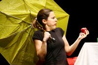 Uma mesa, duas cadeiras e múltiplos objectos vão surgindo das malas de mão de duas mulheres que se encontram num lugar indefinido para nos contarem uma história. Vêm de fora, de onde uma tempestade as inundou, e continuam molhadas porque chove até debaixo dos seus guarda-chuvas.