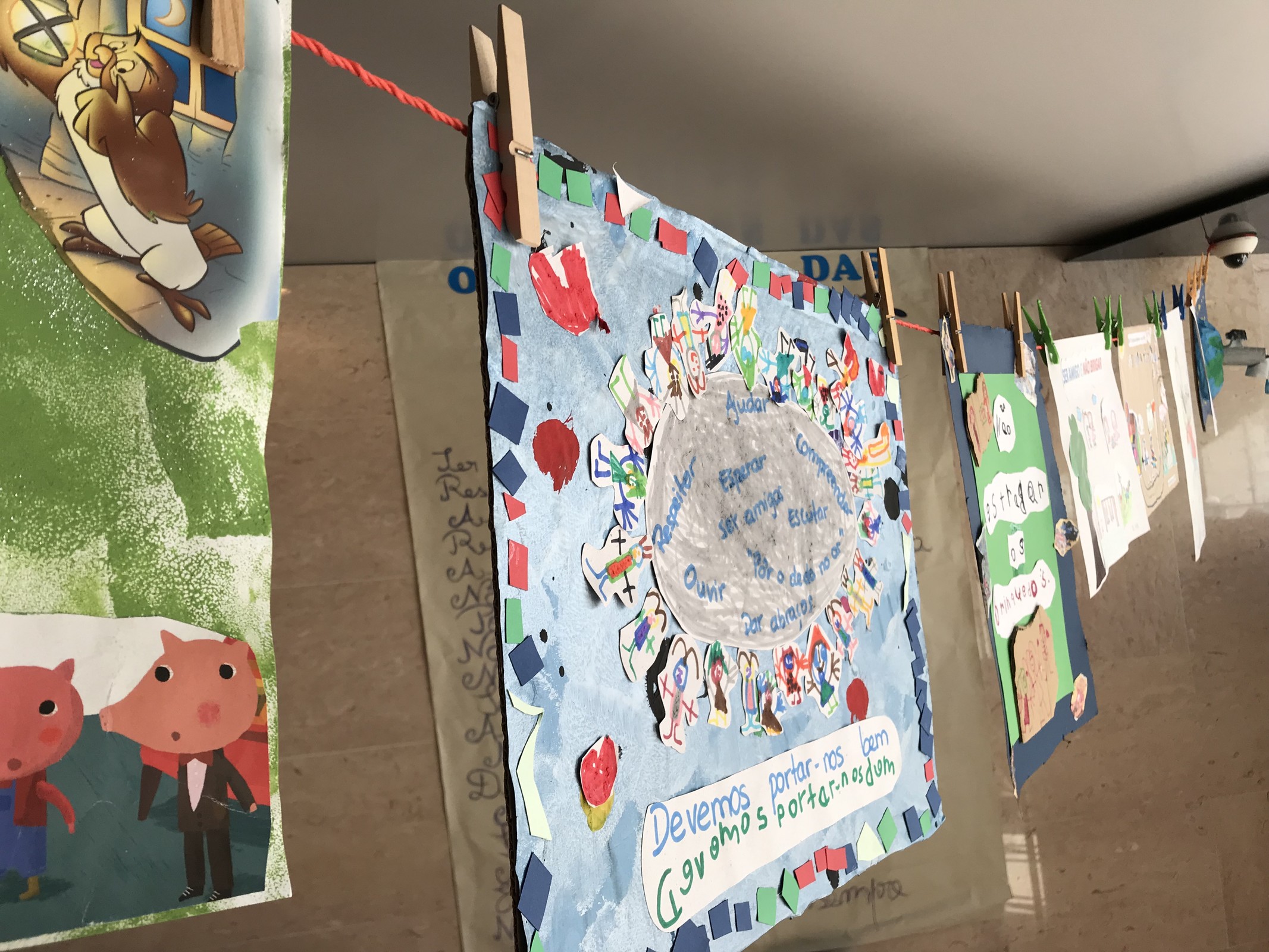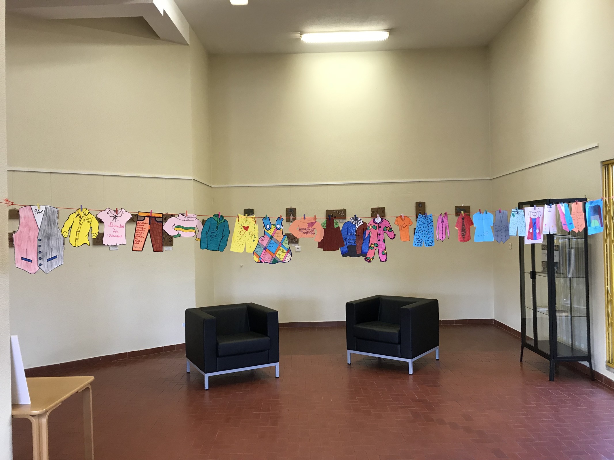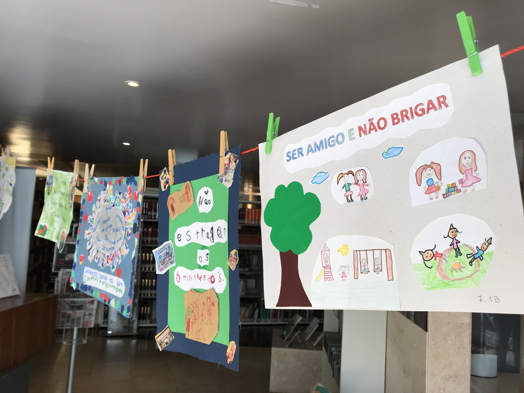 A Biblioteca da Baixa da Banheira tem exposto o Estendal dos Deveres, composto por alunos do pré-escolar e 1º ciclo, no seguimento das sessões das Histórias de Colinho e Histórias Soltas e Loucas.