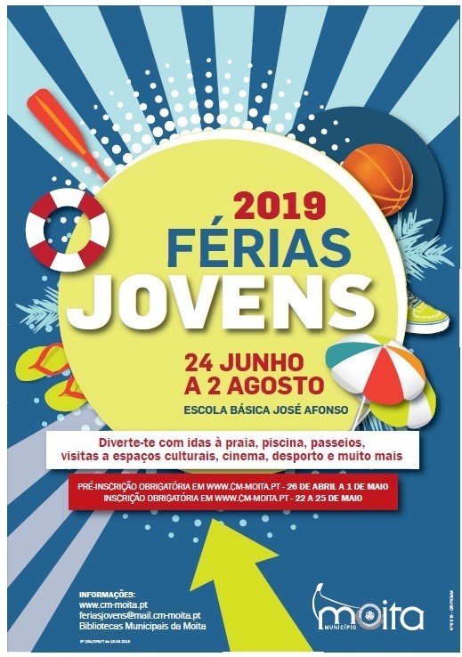 O programa Férias Jovens, dinamizado pela Câmara Municipal da Moita, vai decorrer em três turnos, de 24 de junho a 2 de agosto, na Escola Básica José Afonso, em Alhos Vedros, e visa promover o desenvolvimento das competências pessoais e sociais dos participantes através da educação pela arte e pela cultura, integrando as componentes ambientais e desportivas. O programa inclui idas à praia, piscina, passeios, visitas a espaços culturais, cinema, desporto, entre outros.