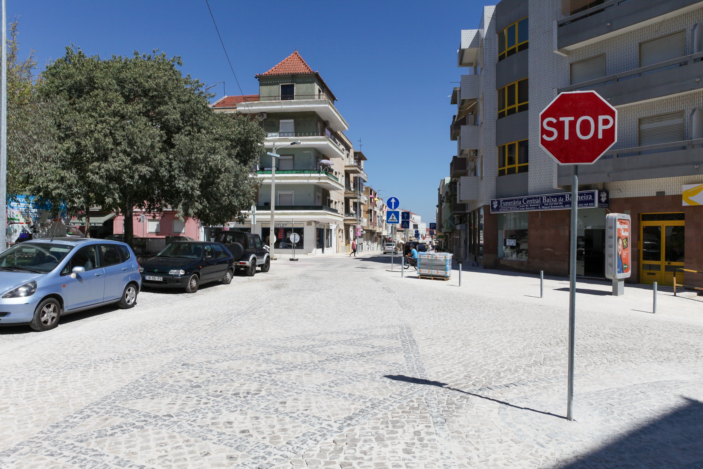 Designada por “Criação de Zona 30”, esta intervenção municipal, abrange uma área de 10 400m2, entre a Rua Augusto Gil e a estação ferroviária e tem por objetivo transformar este importante eixo de estruturação urbana num espaço de coexistência entre o tráfego rodoviário e os “modos suaves” de deslocação (a pé; de bicicleta), com novas zonas qualificadas, inclusivas e atrativas, de forma a incentivar as deslocações quotidianas a pé, contribuindo, em simultâneo, para a revitalização do comércio tradicional.