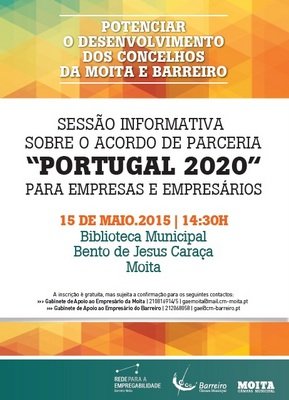 No dia 15 de maio, a partir das 14:30h, vai realizar-se, na Biblioteca Municipal Bento de Jesus Caraça, na Moita, uma Sessão Informativa sobre o Acordo de Parceria “Portugal 2020”, dirigida a empresas e empresários.
