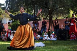 “Baile das Histórias” apresenta-se como um Baile com um alinhamento cénico dado através de danças de roda, histórias e lengalengas contadas e dançadas, ditos antigos e cantilenas de crianças de agora. Uma festa coletiva capaz de enlear gerações, que dá a ver olhares e gestos do feminino.