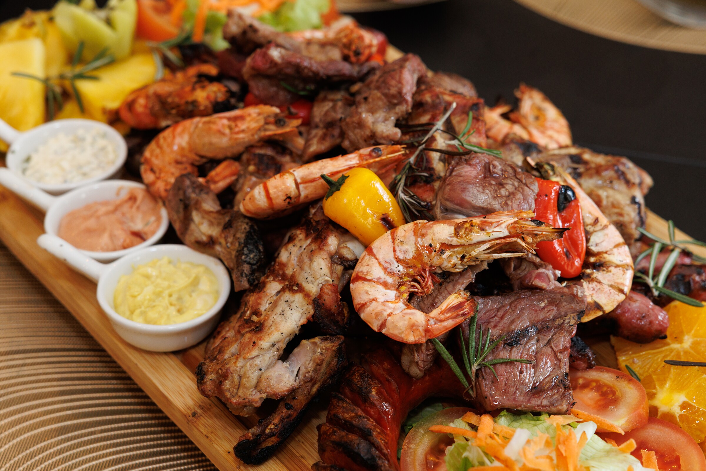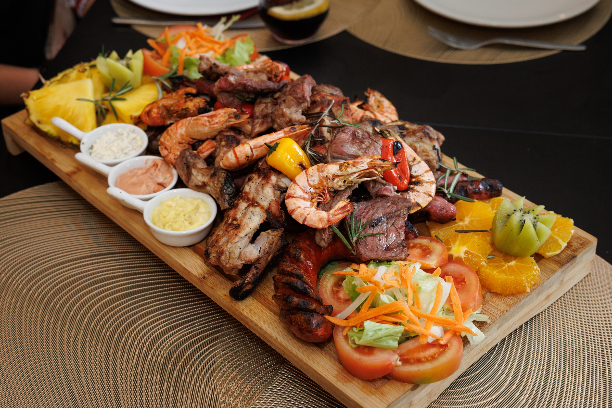 No Alma Ibérica encontra pratos de comer e chorar por mais. “Decidimos criar este conceito de gastronomia portuguesa, mas também espanhola, fazer noites temáticas de fado, sevilhanas, cantares alentejanos, queremos desenvolver aqui um espaço agradável onde as pessoas possam realmente criar memórias”, confessa Isabel. “Aqui podem encontrar as nossas tábuas, com excelentes carnes e frutas, de produtores locais, assim como a nossa recentemente implementada espetada da Madeira, que já traz muitas pessoas aqui”, explica João.