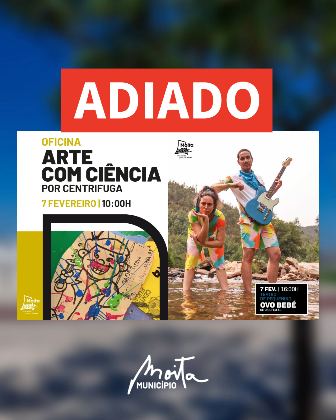 Devido à ativação do Plano Municipal de Emergência, os eventos que estavam previstos para o próximo dia 7 de fevereiro no Centro de Experimentação Artística - Oficina Arte com Ciência; e no Fórum Cultural José Manuel Figueiredo - "OVO Bebé"; encontram-se adiados até data a anunciar.