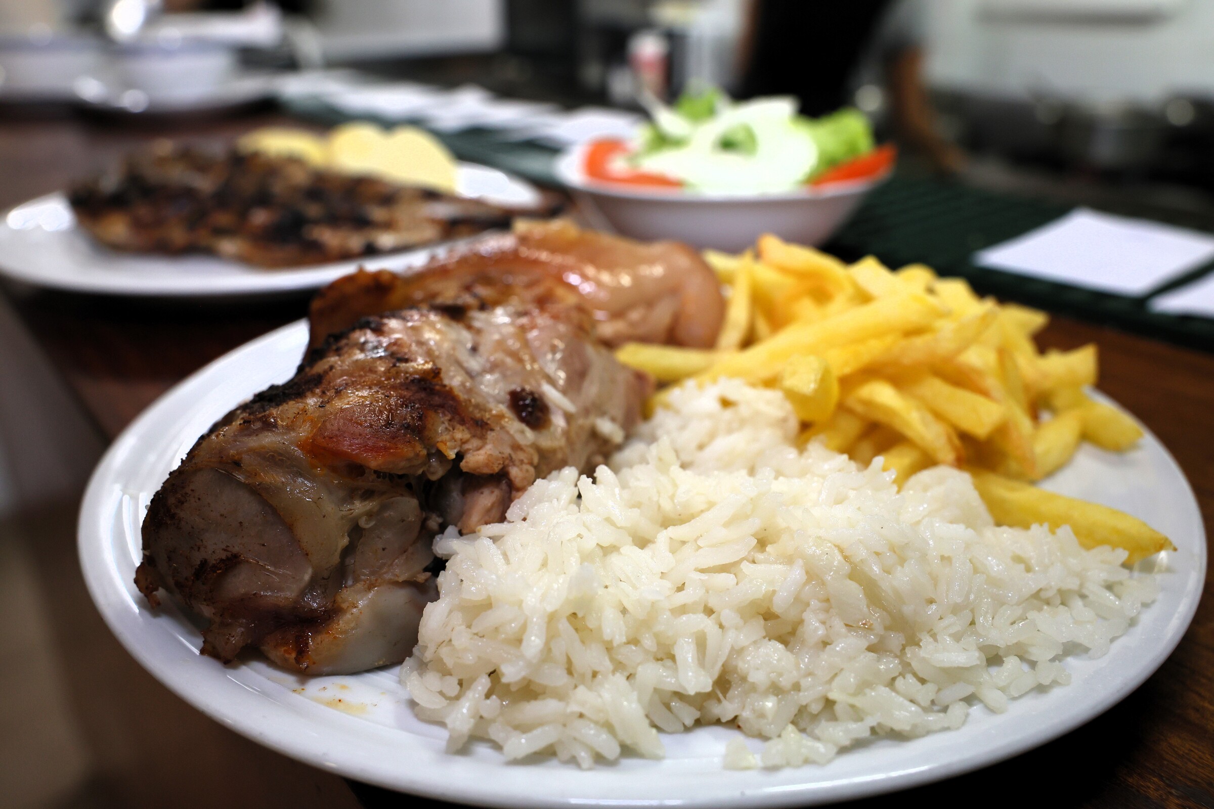 O menu d’O Fragateiro nunca é igual. Nas opções do dia há sempre carne e peixe. “O nosso pernil tem sempre muita saída, as nossas feijoadas e, claro, a nossa caldeirada à fragateiro, que honra, claro o nome do espaço. Os pratos tradicionais são o nosso forte”, diz-nos Nuno. “Uma coisa que nós fazemos questão de manter é os pratos do dia a 8 euros. Achamos que é importante manter um preço baixo para conseguirmos chegar a todas as carteiras. Sabemos, aliás, que isso é um fator decisivo para muitos na escolha do nosso espaço. Aos domingos o preço é um bocadinho superior, mas isso acontece porque nesses dias temos o nosso cabrito à padeiro e vitela assada, que são pratos muito procurados”, explica-nos.