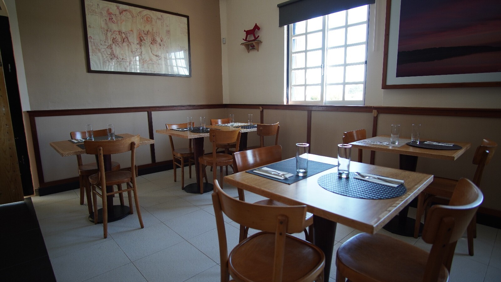 Este local é uma coisa que não existe. Queremos trazer a diferença a esta área, não só no espaço, mas acima de tudo ao nível do produto que servimos e do serviço que prestamos. Queremos ser diferenciadores a todos os níveis”. “Tudo o que está feito nesta sala, foi feito com as nossas mãos e o nosso empenho. Está aqui a nossa alma e o reconhecimento que as pessoas nos dão quando entram, para nós é sem dúvida muito motivador”, refere Hélder Ribeiro. Na sala podemos encontrar detalhes de mobiliário criados a partir de restos de madeira de uma embarcação oferecida pelo Mestre Jaime do Estaleiro Naval de Sarilhos Pequenos, bem como peças de diferentes artistas italianos, que vale a pena apreciar.
