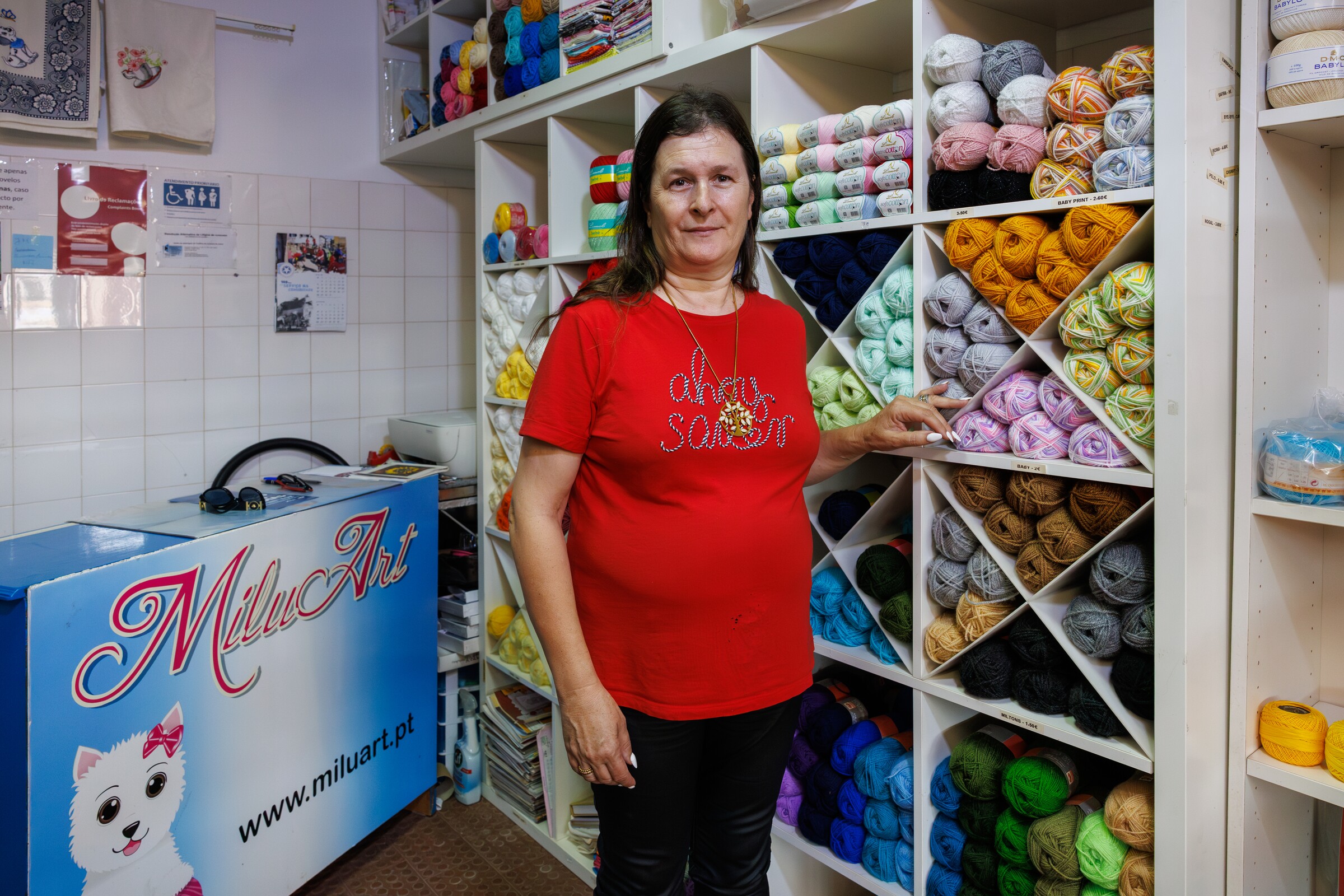 Nesta lojinha pode encontrar Natalina Branco. É ela que toma conta da lojinha Milu Art, que pertence à filha Patrícia Ferreira. Está no mercado há quatro anos e garante que é um local muito especial. “As pessoas aqui vivem em família. O ambiente aqui é muito bom. Somos todos amigos e ajudamo-nos. Este mercado tem muita vida e nós somos exemplo vivo disso”, assegura-nos. De terça a sábado, das 09:00 às 12:40 horas pode encontrar nesta lojinha artigos de bebé, lãs, linhas de chochet, tricot, alguns tecidos, artigos de retrosaria e produtos feitos à mão. “As peças que estão aqui feitas à mão são feitas por mim. Às vezes ensino as pessoas a fazer, noutras ocasiões faço eu própria para venda”, explica Natalina.