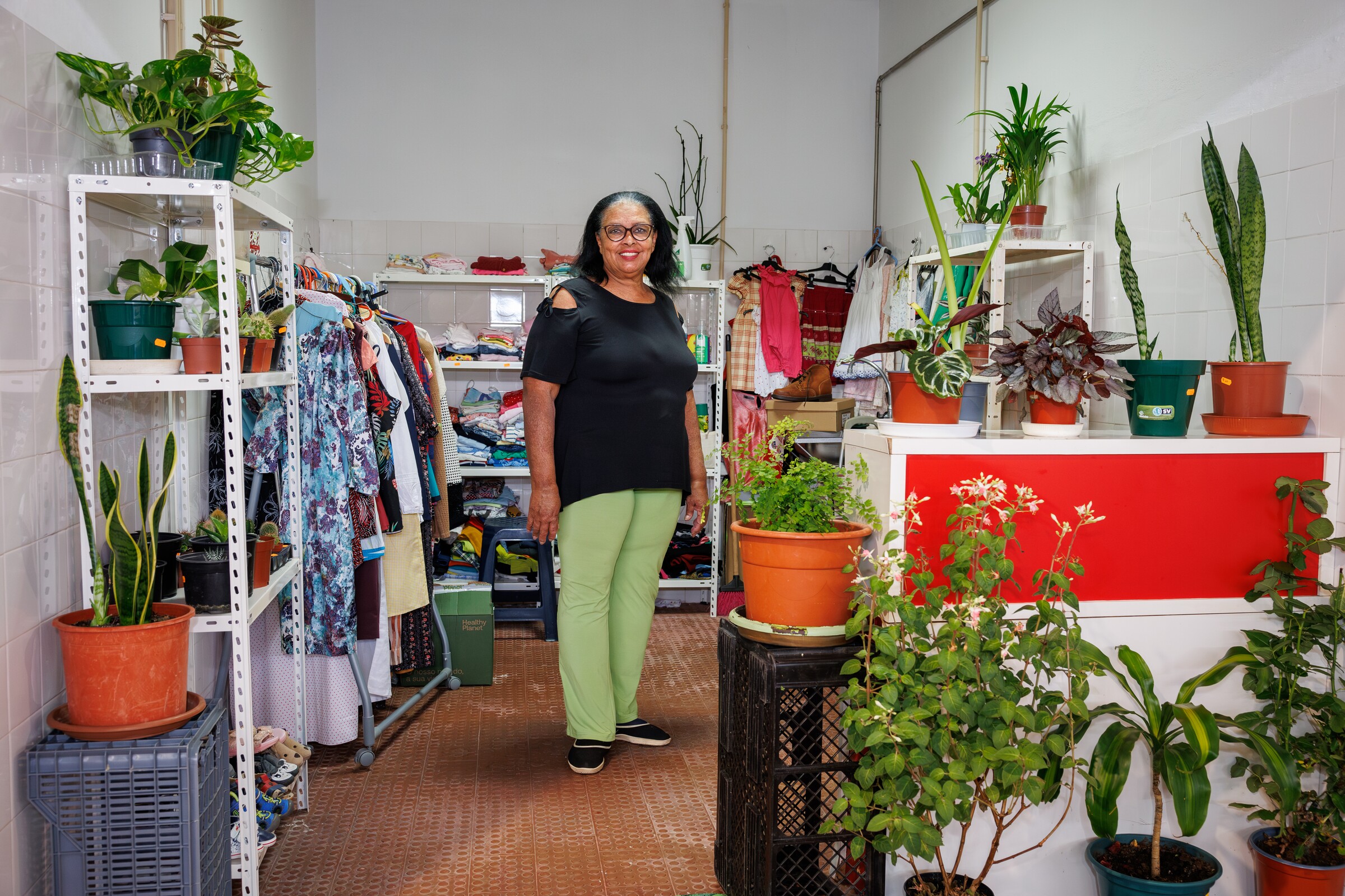 No dia 22 de fevereiro Catarina Cardoso começava o seu negócio no Mercado Municipal da Moita. Este bazar é um projeto para que aos 71 anos, Catarina se sinta viva. “Eu não posso estar parada. Estando aqui sinto-me produtiva e ajudo, também, a que o meu marido se sinta produtivo”, assume. Aqui encontra calçado, roupas, perfumes e plantas. As peças essas são a um preço muito especial, porque o próprio conceito da loja assim o exige. “Eu vendo roupas e calçado para criança e adulto a preços bem baratinhos. Recebo as roupas em bom estado e depois vendo-as para angariar dinheiro. Este é um bazar solidário. Às vezes as pessoas chegam aqui não têm dinheiro e levam na mesma”, assegura. “Tenho peças a 50 cêntimos, por exemplo”, exemplifica.