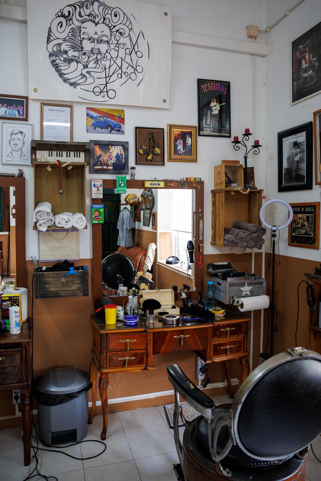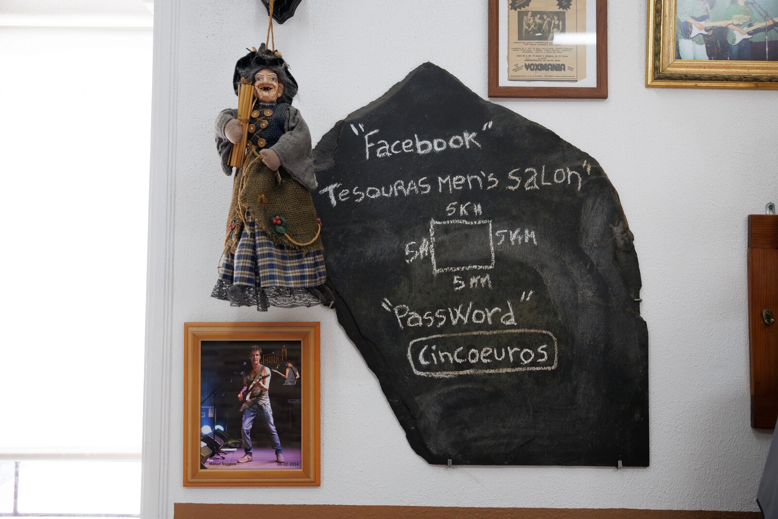 Para além de bar e barbearia quem visita o tesouras tem sempre direito a boa música. Teo toca harmónica e Toninho é músico desde os 11 anos. Este último fez parte dos Ibéria, dos Da Vinci e dos UHF e de quando em vez há música ao vivo para os clientes.