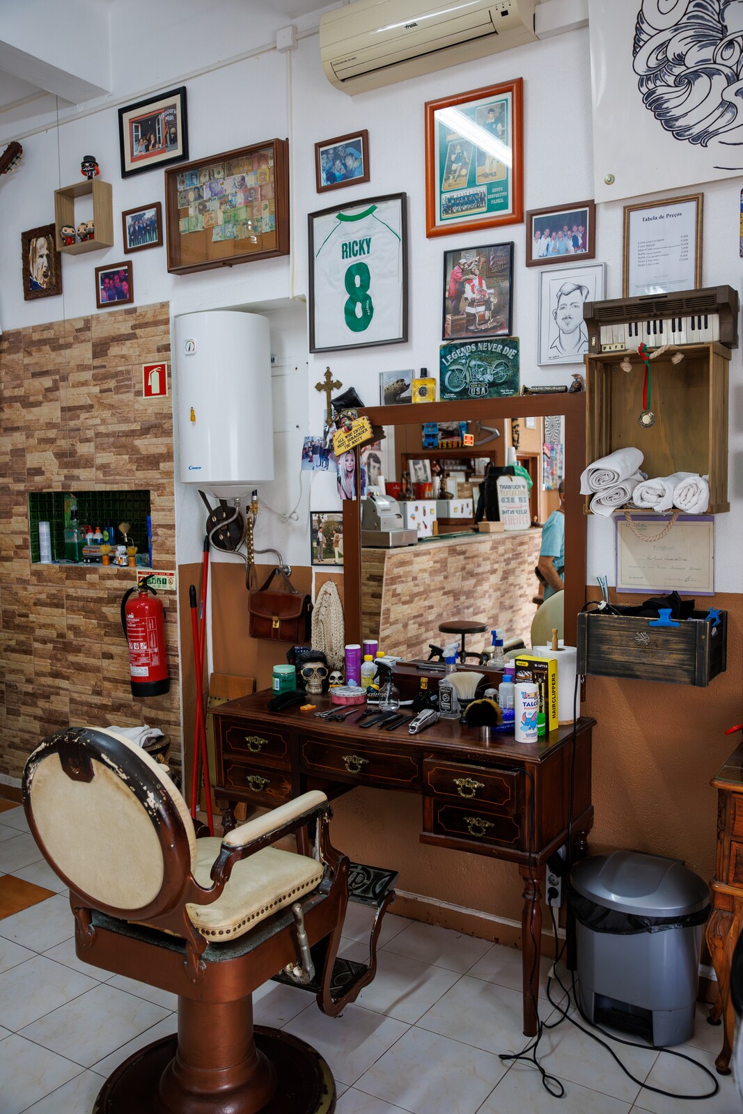 Mas afinal o que tem este barbeiro de tão especial para deixar os seus clientes curiosos e intrigados? Na verdade, este espaço nasceu numa taberna e enquanto corta o seu cabelo pode disfrutar de uma bebida, uma vez que este barbeiro é também um bar. “Este espaço tem uma história. O dono foi meu professor de matemática no liceu e eu propus-lhe fazer duma taberna, que era o que isto era, um salão onde também houvesse bebidas. Para isso arranjamos as licenças todas necessárias nas finanças, na Câmara e tudo. E ele, felizmente esteve de acordo e achou uma boa ideia. Olhámos para a pipa que está à porta e criámos esta coisa de bar e barbearia”, assume Toninho.