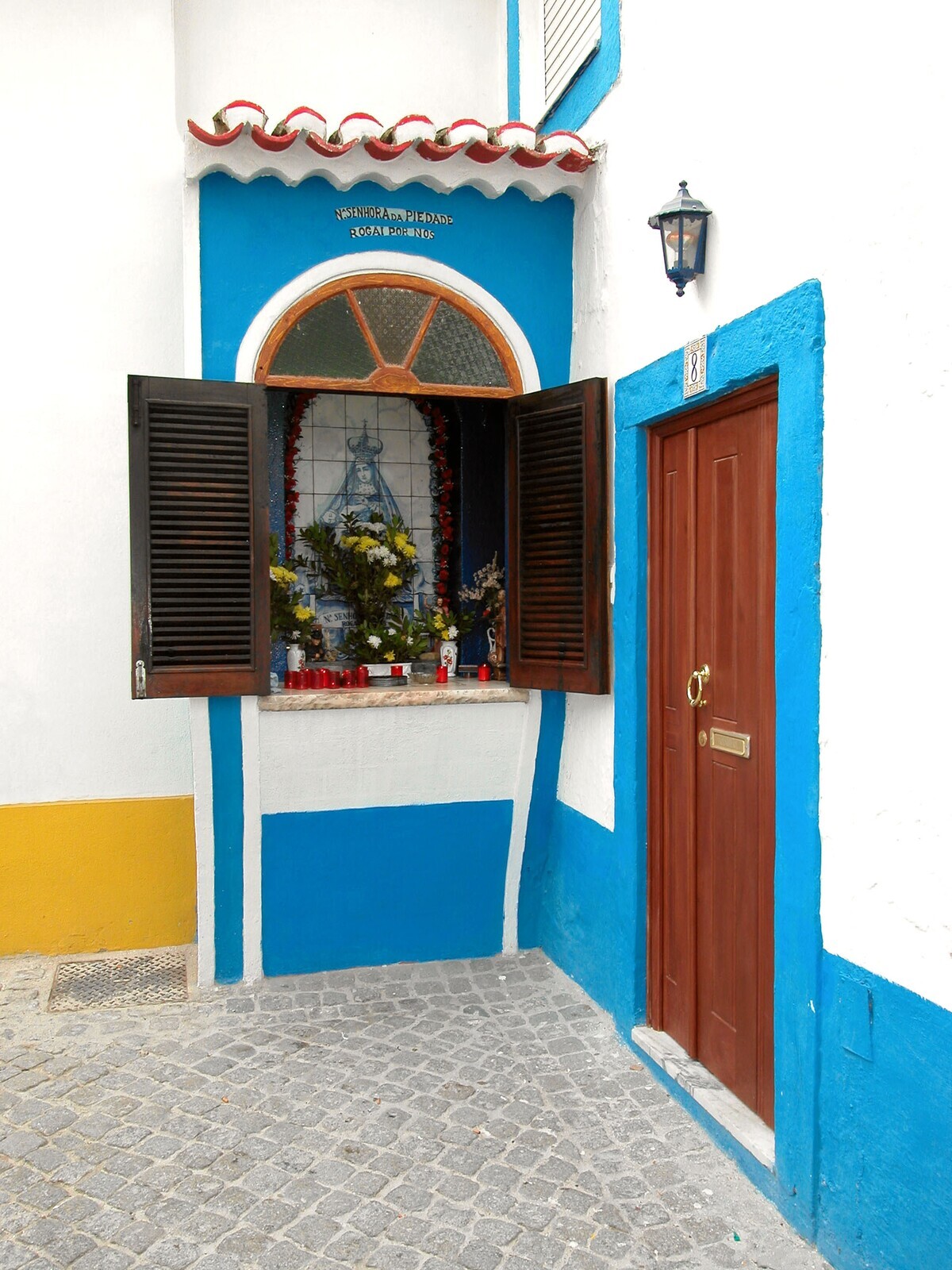 Segundo fontes orais, foi mandado erigir pelos marítimos que ali iam pedir proteção antes de iniciarem as viagens. Hoje, há quem continue a colocar velas de promessas, imagens de santos, representações de partes do corpo em cera e rosários, entre outros objetos, para pedir intervenção divina. O altar é composto por um conjunto de azulejos, representando a Nossa Senhora com o filho morto nos braços, uma réplica do painel original, possivelmente do século XVIII.