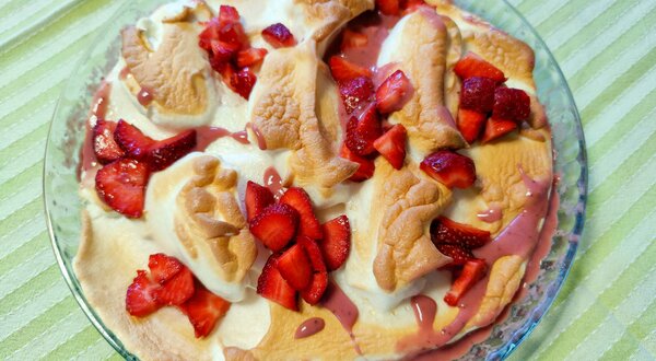 Farófias no forno com doce de morango